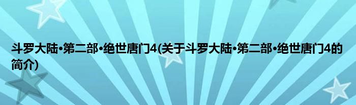 本文关于斗罗大陆·第二部·绝世唐门4的简介就讲解完毕,希望对大家有所帮助。