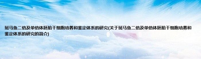 大家好,斑马鱼二倍及单倍体胚胎干细胞培养和鉴定体系的研究,关于斑马鱼二倍及单倍体胚胎干细胞培养和鉴定体系的研究的简介很多人还不知道,现在让我们一起来看看吧!