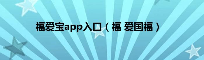 大家好,精选小编来为大家解答以上问题。福爱宝app入口,福 爱国福很多人还不知道,现在让我们一起来看看吧!