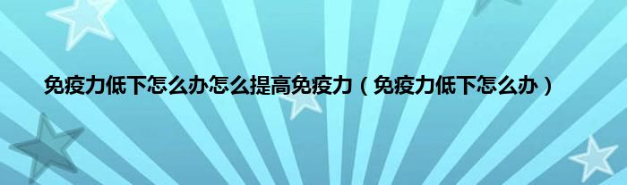 免疫力低下容易让我们受到病毒和细菌的感染,随之而来的是感冒、发烧以及各种疾病。不管是大人还是小孩,长期免疫力低下,都会让自己的身体基础越来越弱。大家一定要重视,才能有一个健康的身体。那么,免疫力低下怎么办?怎么样