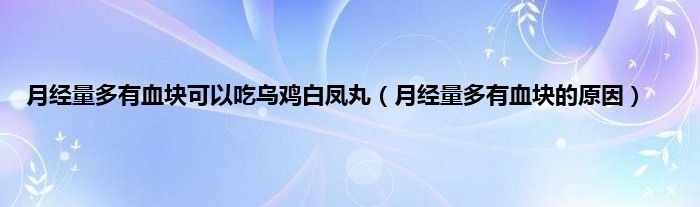 大家好,小科来为大家解答以上问题。月经量多有血块可以吃乌鸡白凤丸,月经量多有血块的原因很多人还不知道,现在让我们一起来看看吧!