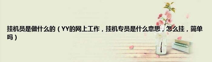 大家好,小常来为大家解答以上问题。挂机员是做什么的,YY的网上工作,挂机专员是什么意思,怎么挂,简单吗很多人还不知道,现在让我们一起来看看吧!