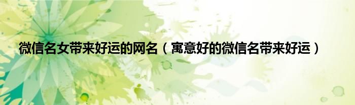 大家好,小常来为大家解答以上问题。微信名女带来好运的网名,寓意好的微信名带来好运很多人还不知道,现在让我们一起来看看吧!