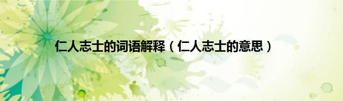 1、仁人志士,汉语成语,拼音是rénrénzhìshì,原指仁爱而有节操,能为正义牺牲生命的人,泛指爱国而为革命事业出力的人。