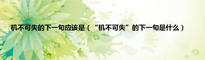 大家好,小常来为大家解答以上问题。机不可失的下一句应该是,“机不可失”的下一句是什么很多人还不知道,现在让我们一起来看看吧!
