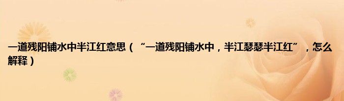 大家好,小常来为大家解答以上问题。一道残阳铺水中半江红意思,“一道残阳铺水中,半江瑟瑟半江红”,怎么解释很多人还不知道,现在让我们一起来看看吧!
