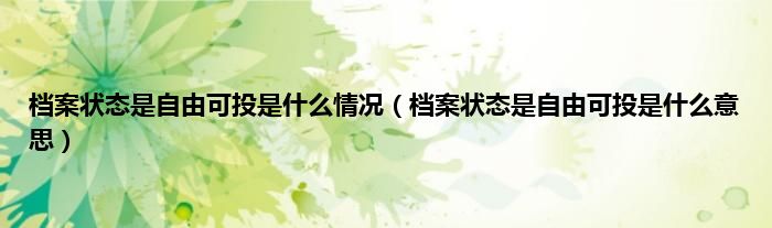 大家好,小常来为大家解答以上问题。档案状态是自由可投是什么情况,档案状态是自由可投是什么意思很多人还不知道,现在让我们一起来看看吧!