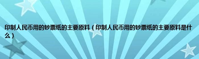 大家好,小常来为大家解答以上问题。印制人民币用的钞票纸的主要原料,印制人民币用的钞票纸的主要原料是什么很多人还不知道,现在让我们一起来看看吧!