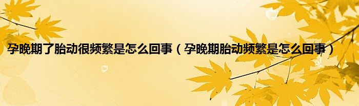大家好,小科来为大家解答以上问题。孕晚期了胎动很频繁是怎么回事,孕晚期胎动频繁是怎么回事很多人还不知道,现在让我们一起来看看吧!