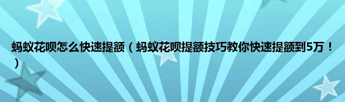 大家好,小常来为大家解答以上问题。蚂蚁花呗怎么快速提额,蚂蚁花呗提额技巧教你快速提额到5万!很多人还不知道,现在让我们一起来看看吧!