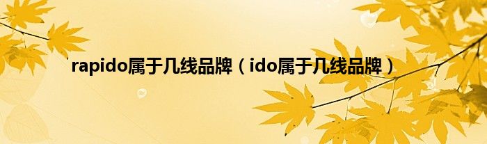 大家好,小科来为大家解答以上问题。rapido属于几线品牌,ido属于几线品牌很多人还不知道,现在让我们一起来看看吧!