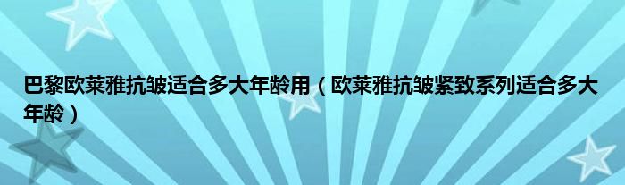 大家好,小科来为大家解答以上问题。巴黎欧莱雅抗皱适合多大年龄用,欧莱雅抗皱紧致系列适合多大年龄很多人还不知道,现在让我们一起来看看吧!