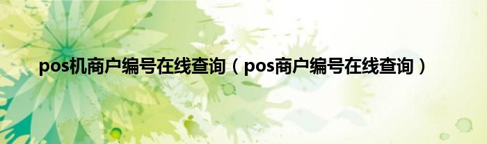大家好,小常来为大家解答以上问题。pos机商户编号在线查询,pos商户编号在线查询很多人还不知道,现在让我们一起来看看吧!