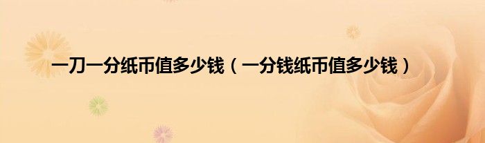 大家好,小常来为大家解答以上问题。一刀一分纸币值多少钱,一分钱纸币值多少钱很多人还不知道,现在让我们一起来看看吧!