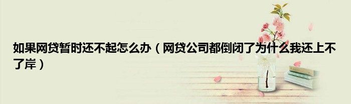 大家好,小常来为大家解答以上问题。如果网贷暂时还不起怎么办,网贷公司都倒闭了为什么我还上不了岸很多人还不知道,现在让我们一起来看看吧!