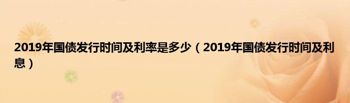 大家好,小常来为大家解答以上问题。2019年国债发行时间及利率是多少,2019年国债发行时间及利息很多人还不知道,现在让我们一起来看看吧!