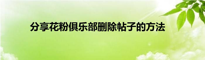 相信通过分享花粉俱乐部删除帖子的方法这篇文章能帮到你,在和好朋友分享的时候,也欢迎感兴趣小伙伴们一起来探讨。