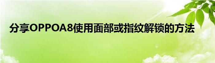 现在大家使用手机的频率越来越频繁,手机也为我们提供了许多的便利,今天小编也来说一下这个分享OPPOA8使用面部或指纹解锁的方法相关的文章,这个操作其实不复杂,接下来就给大家介绍一下分享OPPOA8使用面部或指纹解锁的方法,一起来看看吧: