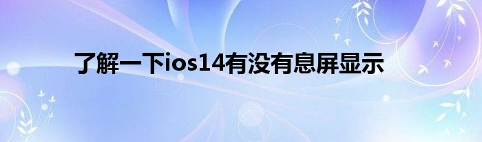 现在大家使用手机的频率越来越频繁,手机也为我们提供了许多的便利,今天小编也来说一下这个了解一下ios14有没有息屏显示相关的文章,这个操作其实不复杂,接下来就给大家介绍一下了解一下ios14有没有息屏显示,一起来看看吧: