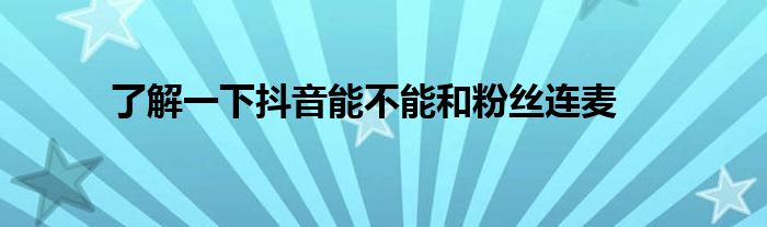 现在大家使用手机的频率越来越频繁,手机也为我们提供了许多的便利,今天小编也来说一下这个了解一下抖音能不能和粉丝连麦相关的文章,这个操作其实不复杂,接下来就给大家介绍一下了解一下抖音能不能和粉丝连麦,一起来看看吧: