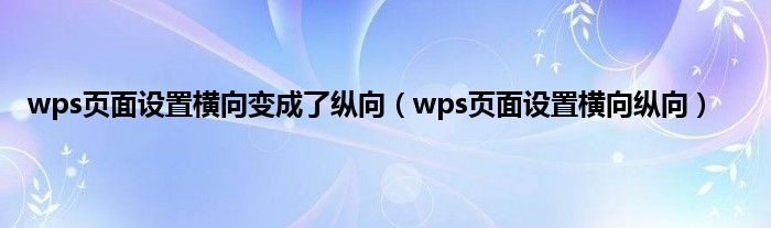wps页面设置横向变成了纵向(wps页面设置横向纵向)