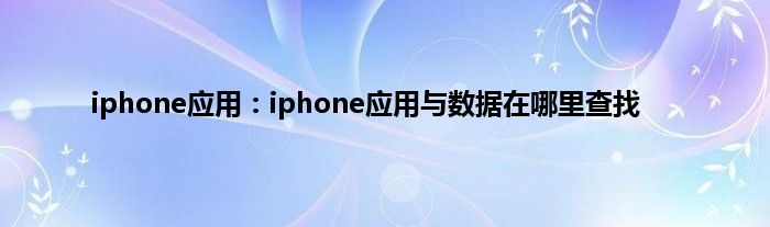 现在大家使用手机的频率越来越频繁,手机也为我们提供了许多的便利,今天小编也来说一下这个iphone应用:iphone应用与数据在哪里查找相关的文章,这个操作其实不复杂,接下来就给大家介绍一下iphone应用:iphone应用与数据在哪里查找,一起来看看吧: