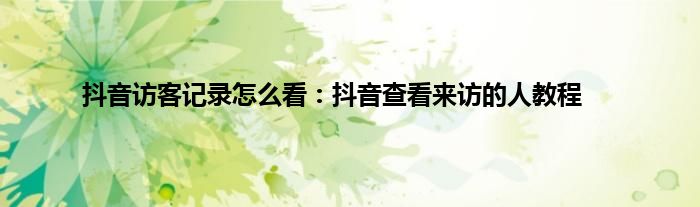 相信通过抖音访客记录怎么看:抖音查看来访的人教程这篇文章能帮到你,在和好朋友分享的时候,也欢迎感兴趣小伙伴们一起来探讨。