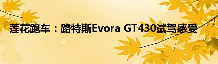 今天来分享一篇个人对莲花跑车:路特斯Evora GT430试驾感受相关分析,众所周知,无论是在坊间民众,还是在汽车媒体的议论中,都是不错的,至于产品到底香不香,通过测试还是可以对莲花跑车:路特斯Evora GT430试驾感受的产品力分析分析的,一起来看看吧:
