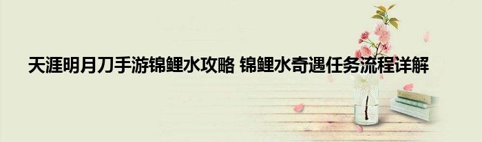 天涯明月刀手游全新鲜遇任务到来,其中锦鲤水怎么做?锦鲤水任务流程也是难住了不少玩家,许多朋友不知道这任务怎么触发的。天涯明月刀手游锦鲤水触发方法是什么?这里就为大家带来天刀手游锦鲤水奇遇任务流程详解。