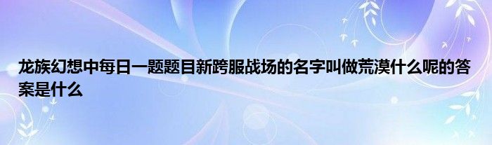 今天弟哥来聊聊一篇关于龙族幻想中每日一题题目新跨服战场的名字叫做荒漠什么呢的答案是什么的文章,游戏是很多人的选择,但是游戏玩多了也会身心疲惫,现在就为大家来简单介绍下龙族幻想中每日一题题目新跨服战场的名字叫做荒漠什么呢的答案是什么,希望对各位小伙伴们有所帮助。