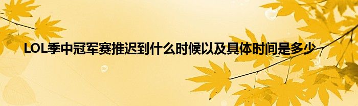 今天弟哥来聊聊一篇关于LOL季中冠军赛推迟到什么时候以及具体时间是多少的文章,游戏是很多人的选择,但是游戏玩多了也会身心疲惫,现在就为大家来简单介绍下LOL季中冠军赛推迟到什么时候以及具体时间是多少,希望对各位小伙伴们有所帮助。