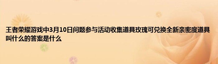 今天弟哥来聊聊一篇关于王者荣耀游戏中3月10日问题参与活动收集道具玫瑰可兑换全新亲密度道具叫什么的答案是什么的文章,游戏是很多人的选择,但是游戏玩多了也会身心疲惫,现在就为大家来简单介绍下王者荣耀游戏中3月10日问题参与活动收集道具玫瑰可兑换全新亲密度道具叫什么的答案是什么,希望对各位小伙伴们有所帮助。