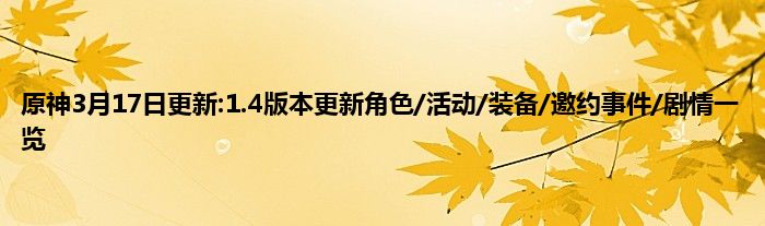 《原神》1.4版本「风花的邀约」今天正式更新上线,1.4大家期待许久的风花节终于要来了,新角色罗莎莉亚到来!而最大的看点就是风花的邀约主题活动了,可以参与风花节挑战,获奖励票券。1.4版本更新内容都有哪些?3月17日更新到什么时候呢?这就来了解个清楚吧。