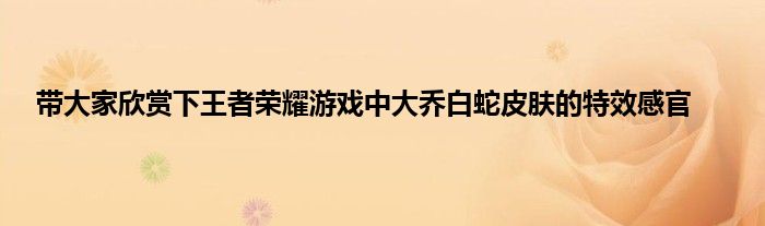 今天弟哥来聊聊一篇关于王者荣耀游戏中大乔白蛇皮肤的特效感官的文章,游戏是很多人的选择,但是游戏玩多了也会身心疲惫,现在就为大家来简单介绍下王者荣耀游戏中大乔白蛇皮肤的特效感官,希望对各位小伙伴们有所帮助。