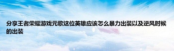 今天弟哥来聊聊一篇关于分享王者荣耀游戏元歌这位英雄应该怎么暴力出装以及逆风时候的出装的文章,游戏是很多人的选择,但是游戏玩多了也会身心疲惫,现在就为大家来简单介绍下分享王者荣耀游戏元歌这位英雄应该怎么暴力出装以及逆风时候的出装,希望对各位小伙伴们有所帮助。