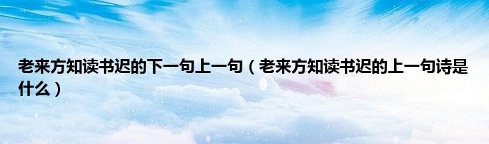 大家好,小科来为大家解答以上问题。老来方知读书迟的下一句上一句,老来方知读书迟的上一句诗是什么很多人还不知道,现在让我们一起来看看吧!