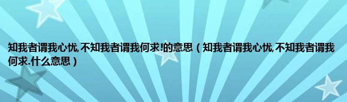 大家好,小科来为大家解答以上问题。知我者谓我心忧,不知我者谓我何求!的意思,知我者谓我心忧,不知我者谓我何求.什么意思很多人还不知道,现在让我们一起来看看吧!