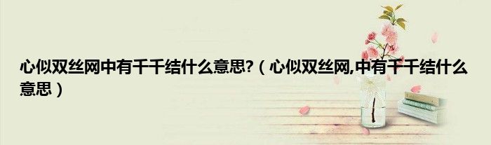 大家好,小科来为大家解答以上问题。心似双丝网中有千千结什么意思?,心似双丝网,中有千千结什么意思很多人还不知道,现在让我们一起来看看吧!