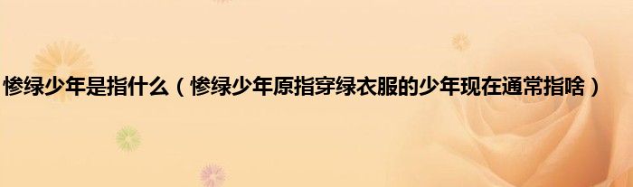 大家好,小科来为大家解答以上问题。惨绿少年是指什么,惨绿少年原指穿绿衣服的少年现在通常指啥很多人还不知道,现在让我们一起来看看吧!