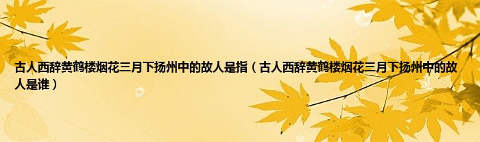 大家好,小科来为大家解答以上问题。古人西辞黄鹤楼烟花三月下扬州中的故人是指,古人西辞黄鹤楼烟花三月下扬州中的故人是谁很多人还不知道,现在让我们一起来看看吧!