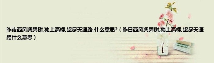 昨夜西风凋碧树,独上高楼,望尽天涯路,什么意思?(昨日西风凋碧树,独上高楼,望尽...