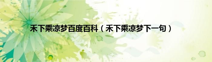 大家好,小科来为大家解答以上问题。禾下乘凉梦百度百科,禾下乘凉梦下一句很多人还不知道,现在让我们一起来看看吧!