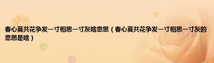 春心莫共花争发一寸相思一寸灰啥意思(春心莫共花争发一寸相思一寸灰的意思是啥)