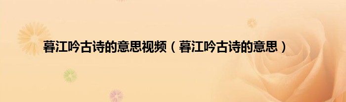 暮江吟古诗的意思视频(暮江吟古诗的意思)