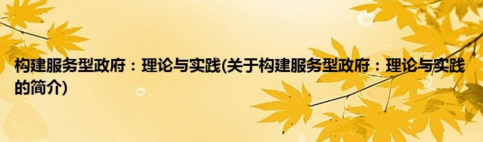 本文关于构建服务型政府:理论与实践的简介就讲解完毕,希望对大家有所帮助。