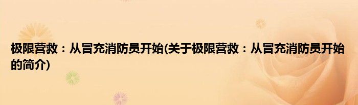 本文关于极限营救:从冒充消防员开始的简介就讲解完毕,希望对大家有所帮助。
