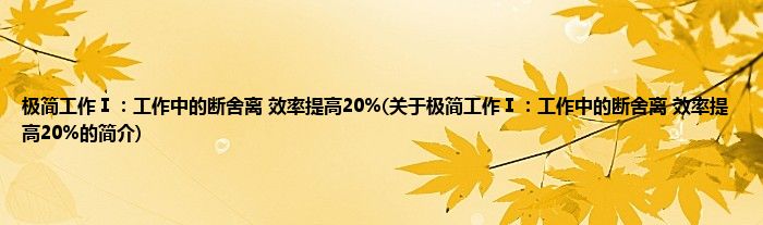 本文关于极简工作Ⅰ:工作中的断舍离,效率提高20%的简介就讲解完毕,希望对大家有所帮助。