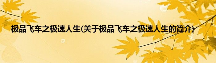本文关于极品飞车之极速人生的简介就讲解完毕,希望对大家有所帮助。
