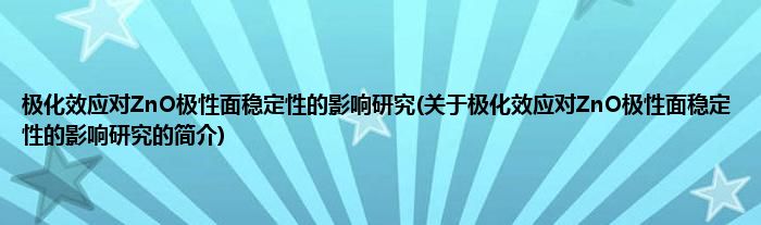 本文关于极化效应对ZnO极性面稳定性的影响研究的简介就讲解完毕,希望对大家有所帮助。