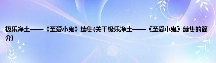 本文关于极乐净土——《至爱小鬼》续集的简介就讲解完毕,希望对大家有所帮助。